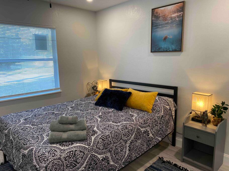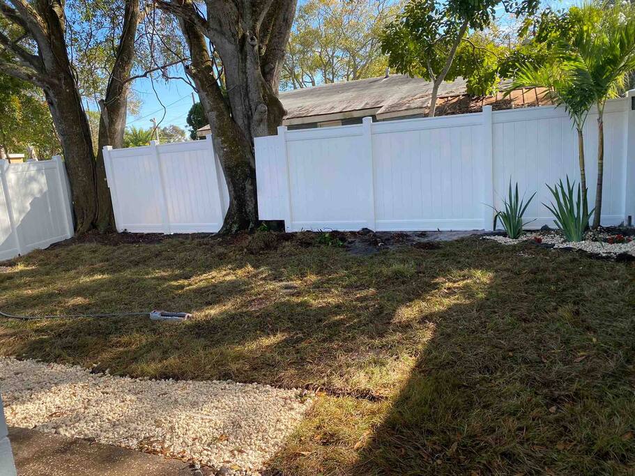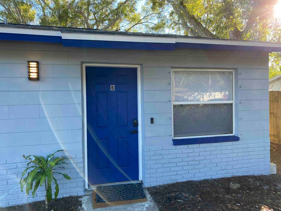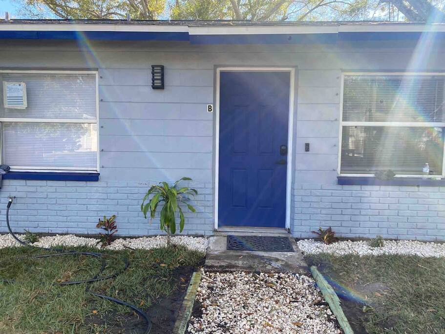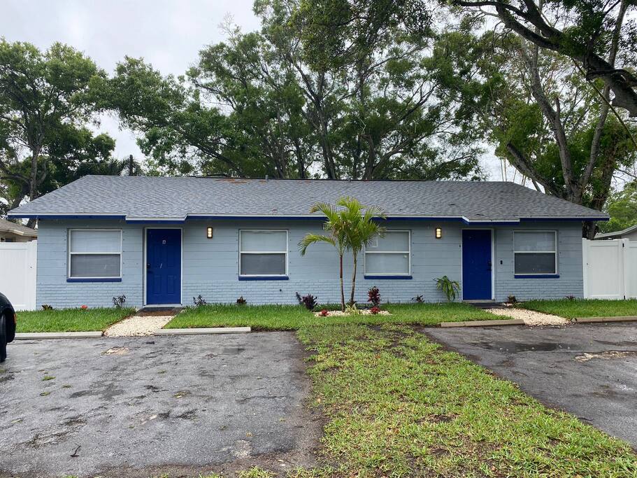 This Newly renovated, 750-Sqft, 2 Bedrooms 1 Bathroom, a Half-Duplex Unit. it is centrally located and peacefully situated near golf courses, top white sand beaches, the best restaurants, and shopping. Beautiful walk-in shower, fully stocked kitchen with stainless appliances, 55" 4K TV with all streaming services such as Netflix and Hulu, and Great WiFi @250Mbit/s Professionally cleaned and sanitized between guests. Free parking in the driveway for up to two cars, Private fenced backyard. ** Unit B ** Traveling with friends, We got two (Half Duplex) so you can book both units A&B for an unforgettable experience, Inquire with us. Enjoy this Florida blockhouse, located in the heart of Tampa Bay. Exquisite home away from home. Eagle Lake Park is less than a mile away for cycling, jogging, trails and nature/bird watching, etc.; Publix grocery, 2blocks; Walmart, Costco&Sams are less than 2miles; Some of the Best Beaches in the world, enjoy Clearwater Beach + The Clearwater Aquarium, Both less than 5miles; Tampa Bay Int. Airport, Lowry Park Zoo & Busch Gardens Theme Park, Designer Shopping outlets about 30mins drive. Adventure Island, Dinosaur World, Falcon's Fury Theme Parks are all Less than an hour's drive away. Disney World and Universal Studios, 1.5hrs drive. 24/7 access to the entire apartment, self-check-in with a keypad lock. private designated parking is in front of the house for up to two cars. We respect your privacy during your stay but are available if you need us 24/7. Shopping, restaurants, parks, trails Free parking for up to two cars on the driveway. Steps from the door. Ring Audio/Video Cameras are on the exterior of the house and parking lot and are operating during your entire stay. Quiet hours 9 PM to 9 AM Enforced. Pet-friendly $50 pet cleaning fee. Large private backyard.