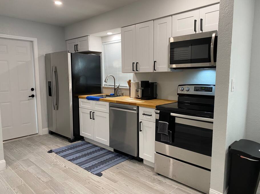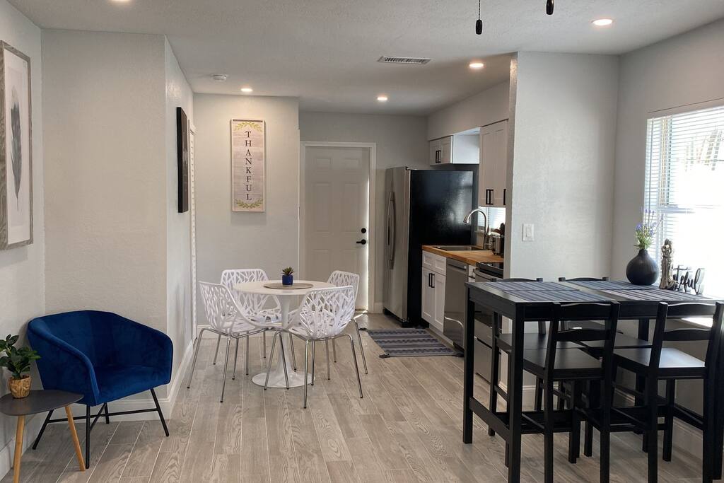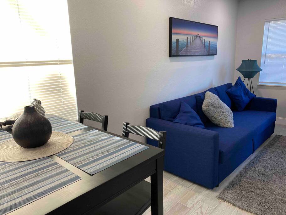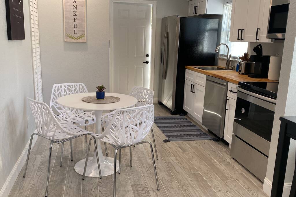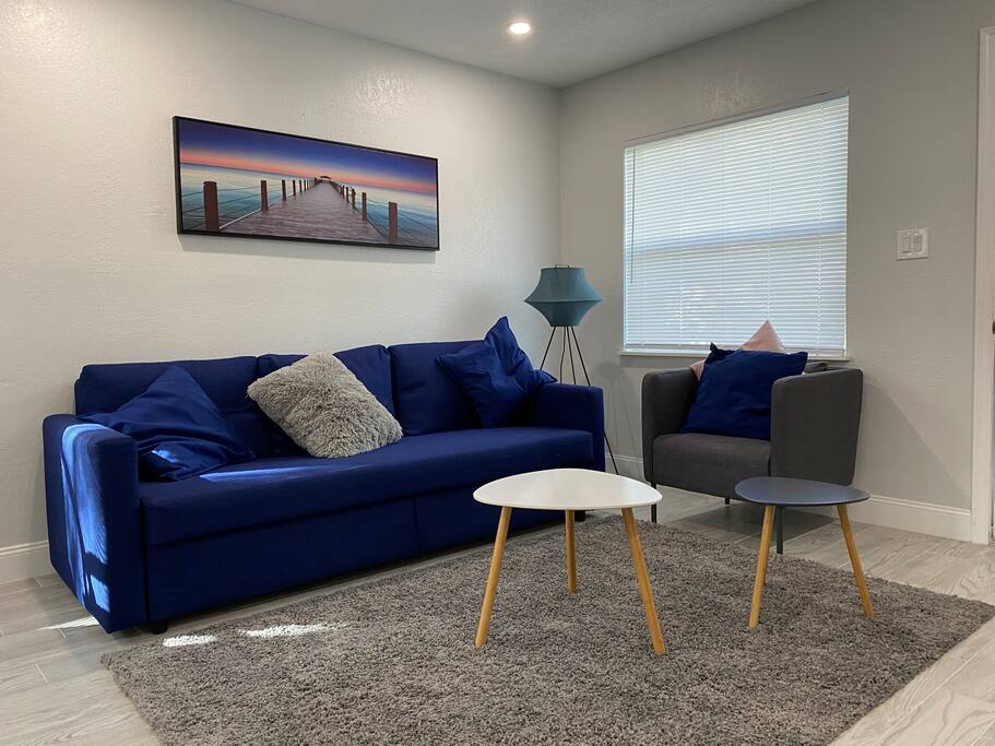 This Newly renovated, 750-Sqft, 2 Bedrooms 1 Bathroom, a Half-Duplex Unit. it is centrally located and peacefully situated near golf courses, top white sand beaches, the best restaurants, and shopping. Beautiful walk-in shower, fully stocked kitchen with stainless appliances, 55" 4K TV with all streaming services such as Netflix and Hulu, and Great WiFi @250Mbit/s Professionally cleaned and sanitized between guests. Free parking in the driveway for up to two cars, Private fenced backyard. ** Unit B ** Traveling with friends, We got two (Half Duplex) so you can book both units A&B for an unforgettable experience, Inquire with us. Enjoy this Florida blockhouse, located in the heart of Tampa Bay. Exquisite home away from home. Eagle Lake Park is less than a mile away for cycling, jogging, trails and nature/bird watching, etc.; Publix grocery, 2blocks; Walmart, Costco&Sams are less than 2miles; Some of the Best Beaches in the world, enjoy Clearwater Beach + The Clearwater Aquarium, Both less than 5miles; Tampa Bay Int. Airport, Lowry Park Zoo & Busch Gardens Theme Park, Designer Shopping outlets about 30mins drive. Adventure Island, Dinosaur World, Falcon's Fury Theme Parks are all Less than an hour's drive away. Disney World and Universal Studios, 1.5hrs drive. 24/7 access to the entire apartment, self-check-in with a keypad lock. private designated parking is in front of the house for up to two cars. We respect your privacy during your stay but are available if you need us 24/7. Shopping, restaurants, parks, trails Free parking for up to two cars on the driveway. Steps from the door. Ring Audio/Video Cameras are on the exterior of the house and parking lot and are operating during your entire stay. Quiet hours 9 PM to 9 AM Enforced. Pet-friendly $50 pet cleaning fee. Large private backyard.