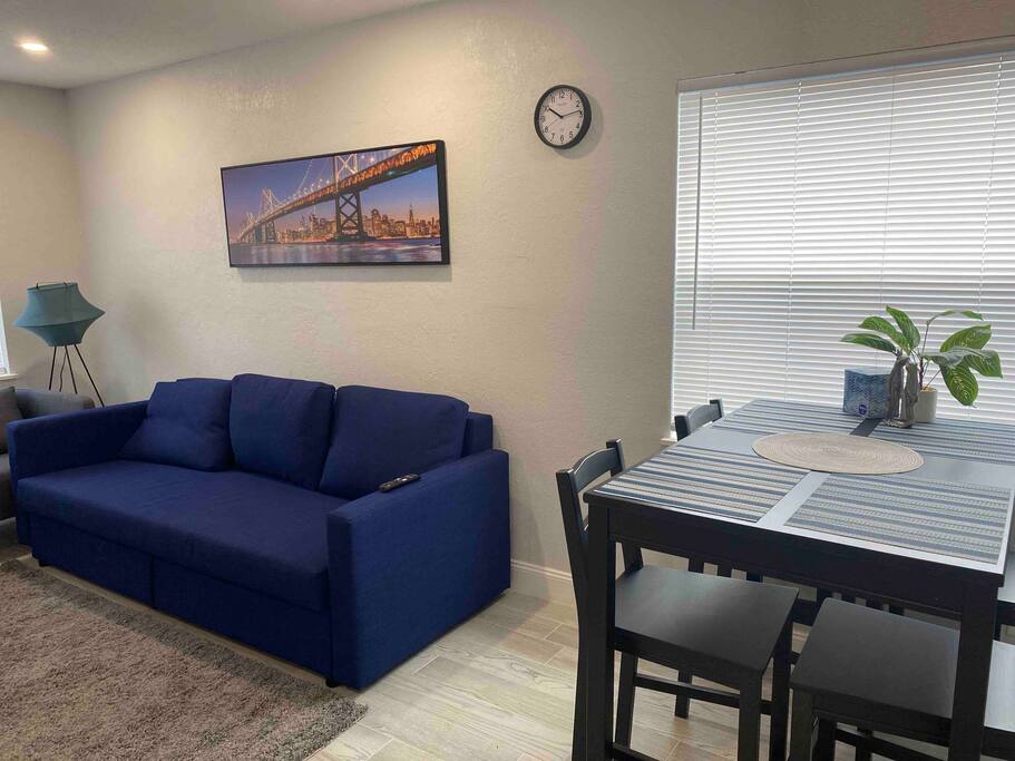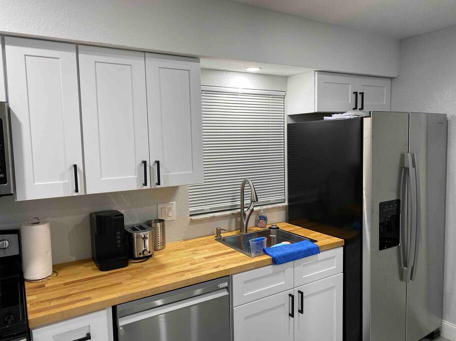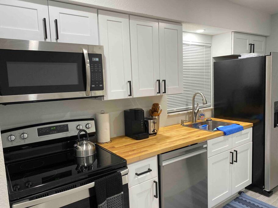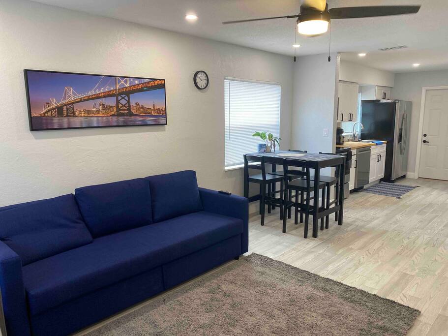 This Newly renovated, 750-Sqft, 2 Bedrooms 1 Bathroom, is a Half-Duplex Unit. Centrally located, peacefully situated close to golf courses, beaches, restaurants, and shopping. With a private fenced backyard. Just renovated with a beautiful walk-in shower, fully stocked kitchen with stainless appliances, 55" 4K TV with all streaming services such as Netflix and Hulu, and Great WiFi @250Mbit/s Professionally cleaned and sanitized between guests. Free parking in the driveway for up to two cars. ** Unit A ** Traveling with friends, We offer two identical (Half Duplex) so you can book both units A&B for an unforgettable experience, inquire with us. Enjoy this Florida blockhouse, located in the heart of Tampa Bay. Exquisite home away from home. Eagle Lake Park is less than a mile away for cycling, jogging, trails and nature/bird watching, etc.; Publix grocery, 2blocks; Walmart, Costco&Sams are less than 2miles; Some of the Best Beaches in the world, enjoy Clearwater Beach + The Clearwater Aquarium, Both less than 5miles; Tampa Bay Int. Airport, Lowry Park Zoo & Busch Gardens Theme Park, Designer Shopping outlets about 30mins drive. Adventure Island, Dinosaur World, Falcon's Fury Theme Parks are all Less than an hour's drive away. Disney World and Universal Studios, 1.5hrs drive. 24/7 access to the entire apartment, self-check-in with a keypad lock. private designated parking is in front of the house for up to two cars. We want you to be as comfortable as possible. You can reach me at nearly any time of the day for any concerns. We take pride in providing guests with quick response time and try our best to help. we are here for you during your stay, but our level of interaction is up to you. I’m only a text message away. You will be able to self-check-in upon arrival. Close to shops, retail, restaurants, beaches, golf courses and nature parks. Free parking for up to two cars on the driveway. Steps from the door. Ring Audio/Video Cameras are on the exterior of the house and parking lot and are operating during your stay. Quiet hours 9 PM to 9 AM Enforced. Pet-friendly $50 pet cleaning fee. Large back yard.
