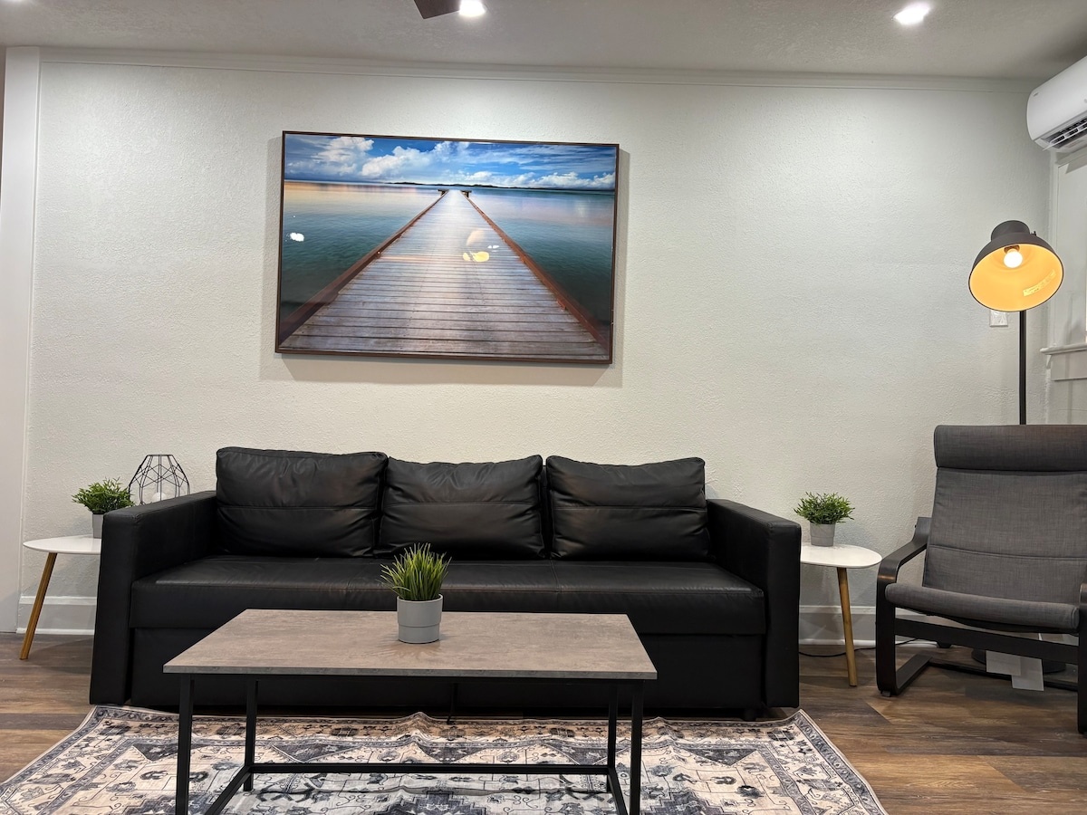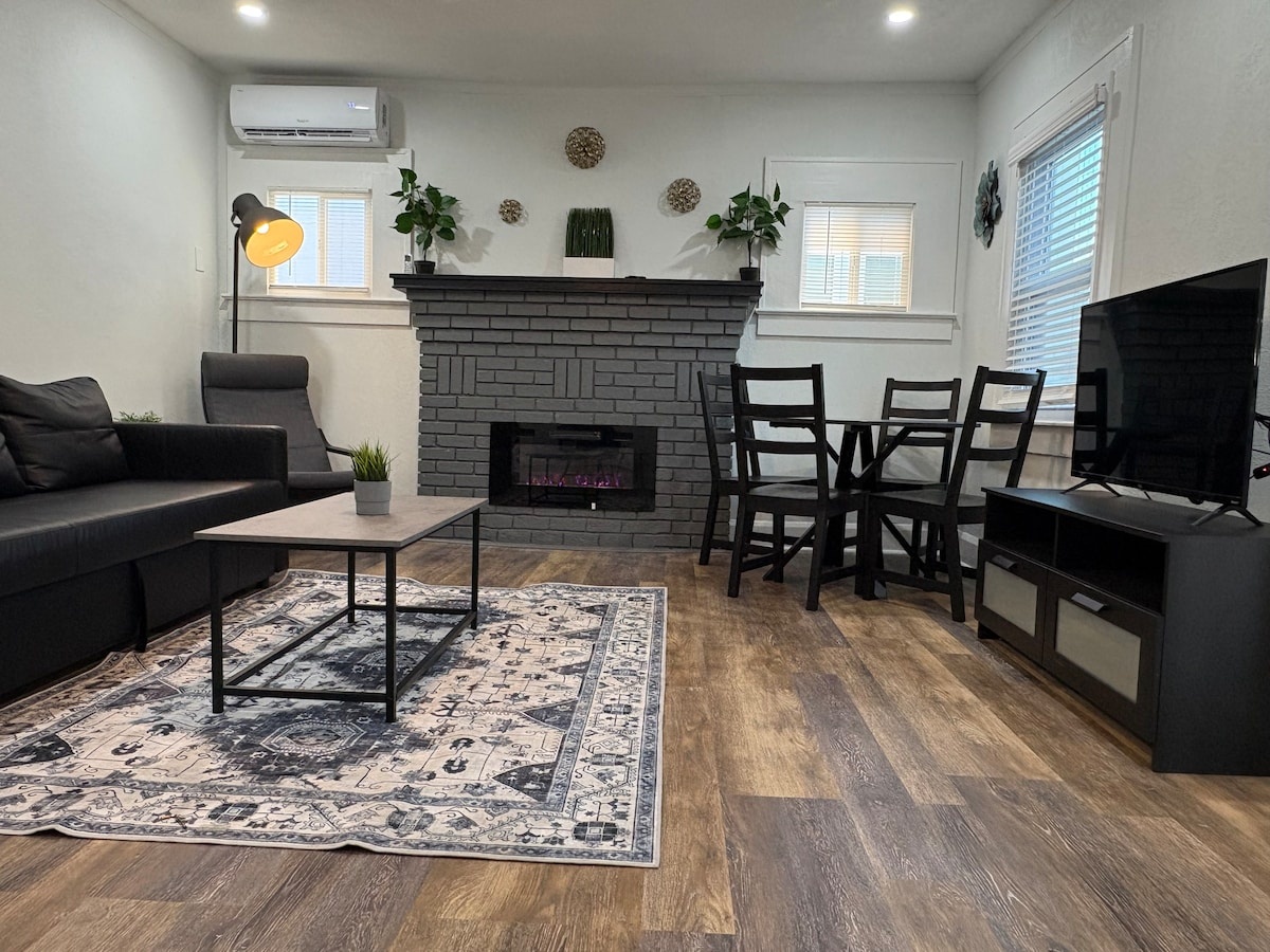 Discover stylish, renovated urban living in the heart of St. Pete. This chic bungalow is perfectly situated just steps from downtown, offering easy access to top attractions, restaurants, shops, and nightlife. Walk to the vibrant Central Avenue, the scenic waterfront, and cultural hotspots like the Dali Museum and Tropicana Field. Most of the city’s best spots are just a short stroll away, Whether you’re here to relax or enjoy the city vibe, This 5th Ave Hideaway is your perfect retreat. Step into this completely renovated and stylish bungalow that offers modern comforts and urban convenience. Perfectly located just steps from downtown, this cozy hideaway provides everything you need for a comfortable and memorable stay. Features You’ll Love: High-Speed WiFi: Stay connected whether you’re working remotely or streaming your favorite shows. Roku TV: Enjoy endless entertainment options from your favorite streaming services. Electric Fireplace: Add a touch of warmth and ambiance to your evenings. Fully Stocked Kitchen: Cook like a pro with a full set of pots, pans, utensils, and appliances, all ready for your use. Luxurious Walk-In Shower: Unwind in a spa-like bathroom experience with fresh towels provided. In-Unit Washer & Dryer: Enjoy the convenience of doing laundry during your stay. Comfortable Living Spaces: Fresh, high-quality linens and bedding ensure a restful night’s sleep. Thoughtfully Prepared for You: The home is professionally cleaned before each stay, ensuring a spotless and welcoming environment. You’ll find fresh towels, linens, and everything you need for a hassle-free visit. Prime Location: Located on 5th Ave N, this property is steps away from St. Pete’s best attractions. Stroll to Central Avenue for amazing restaurants, quirky boutiques, and local nightlife. The Dali Museum, waterfront parks, Tropicana Field, and more are all within walking distance. Whether you’re visiting for work or leisure, the 5th Ave Hideaway offers the perfect blend of style, comfort, and location. Book your stay today and experience the best of St. Pete!
