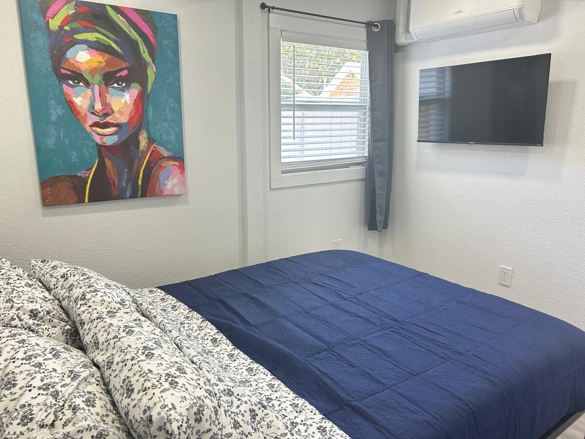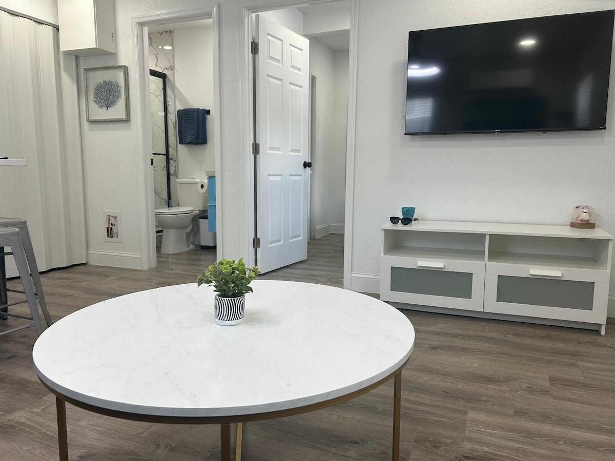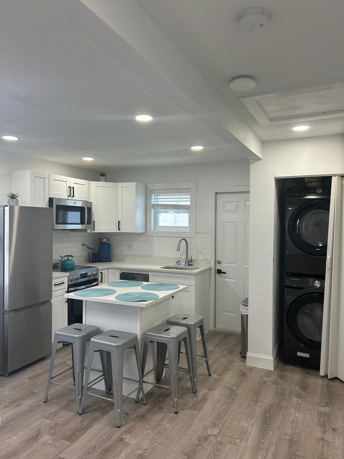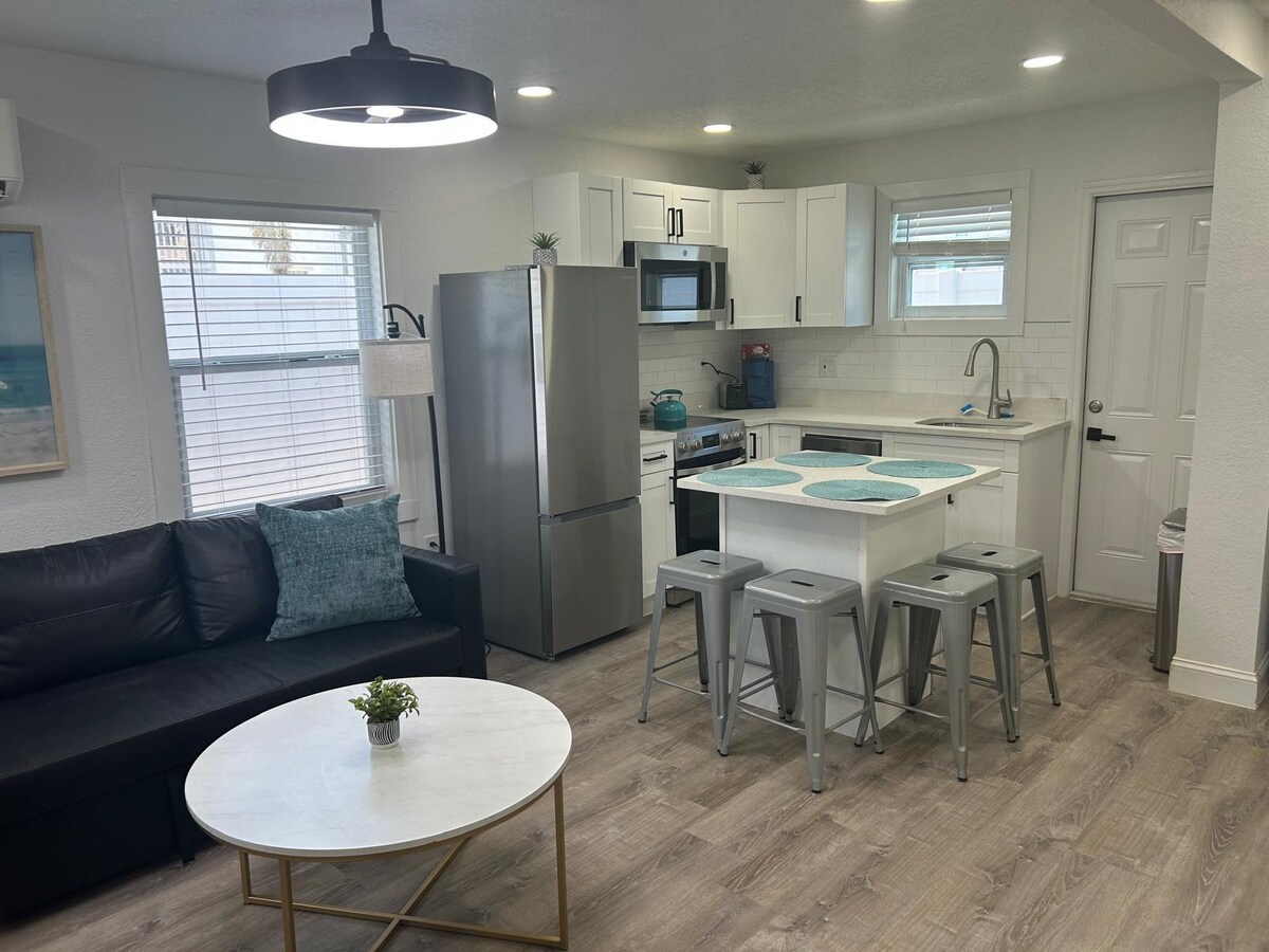 Sunset Studio, a 350-square-foot apartment in downtown St. Pete, offers a washer/dryer, private entrance, two TVs, and super-fast WiFi. It also features a fully stocked kitchen and a private patio. Kick back and relax in this calm, stylish space.