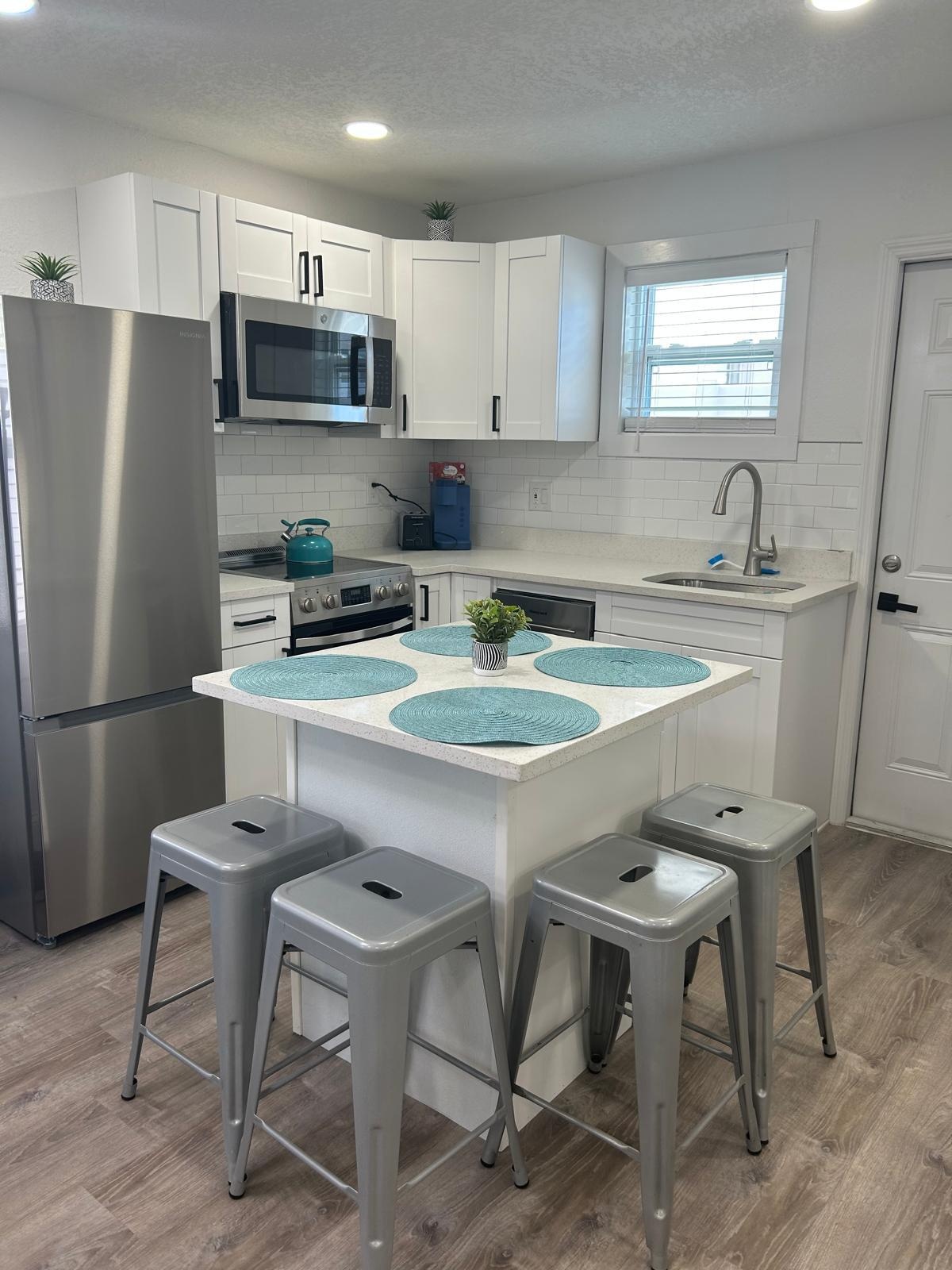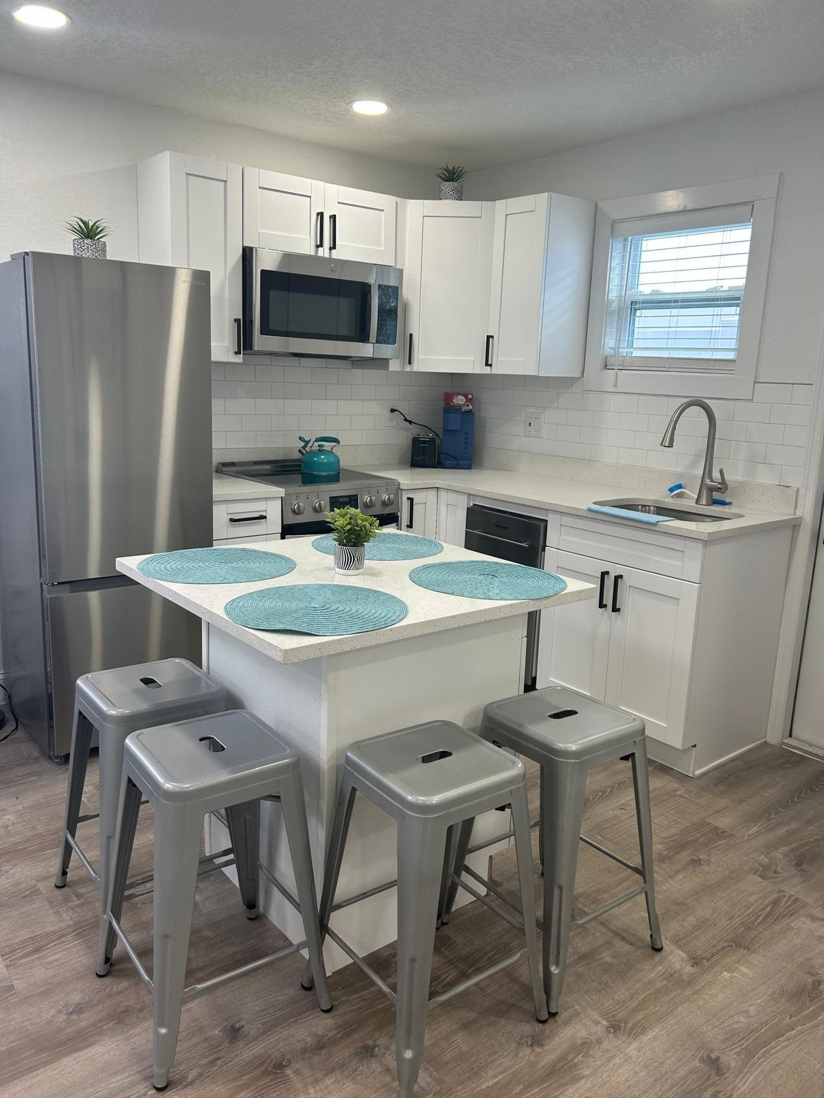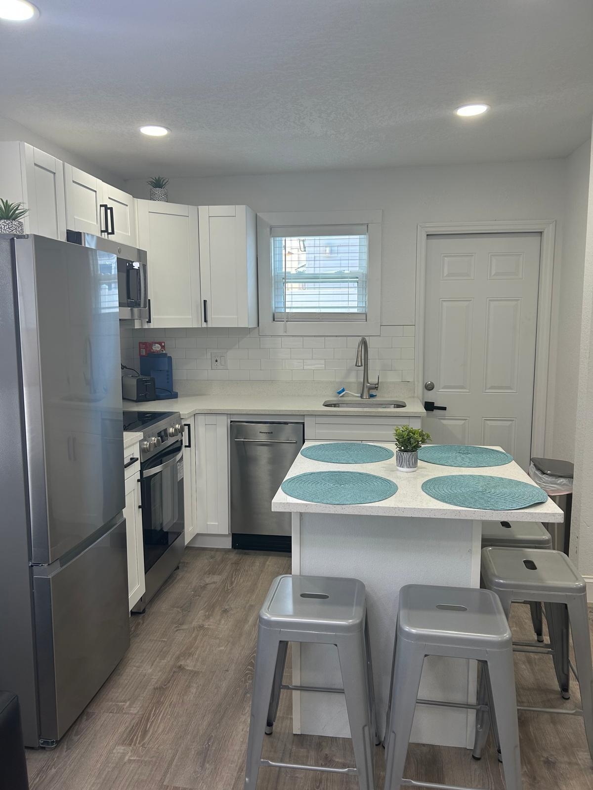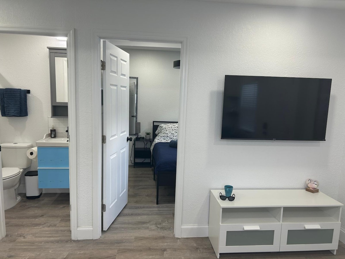 Sunset Studio, a 350-square-foot apartment in downtown St. Pete, offers a washer/dryer, private entrance, two TVs, and super-fast WiFi. It also features a fully stocked kitchen and a private patio. Kick back and relax in this calm, stylish space.