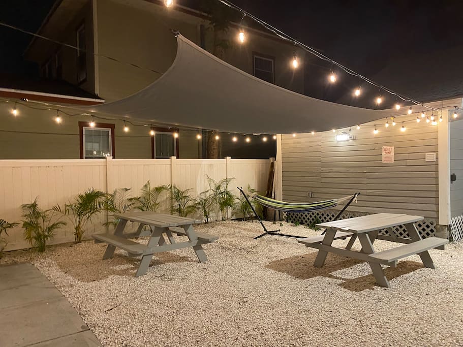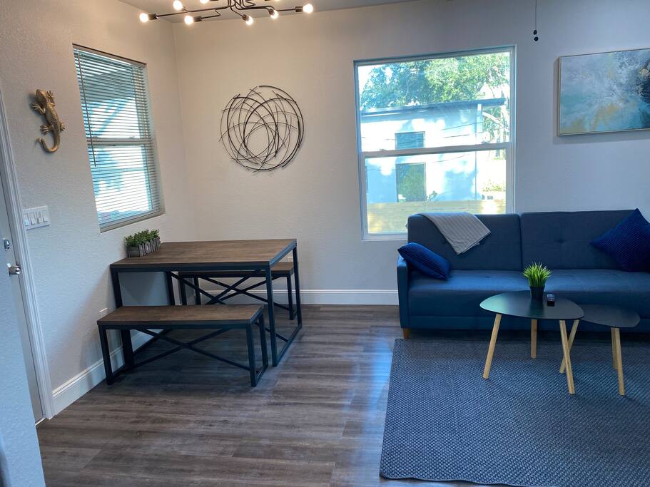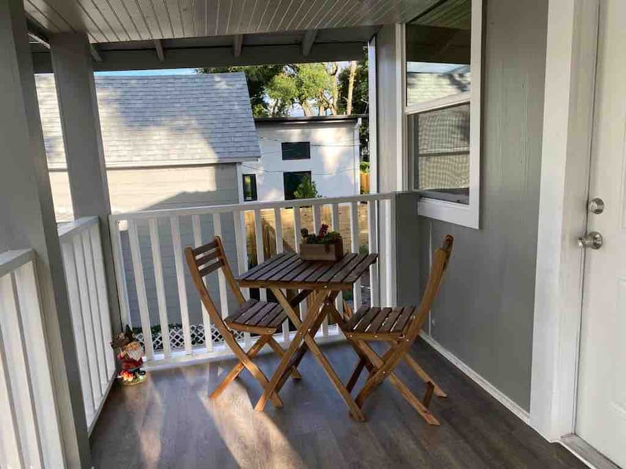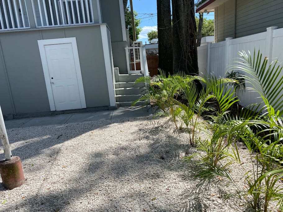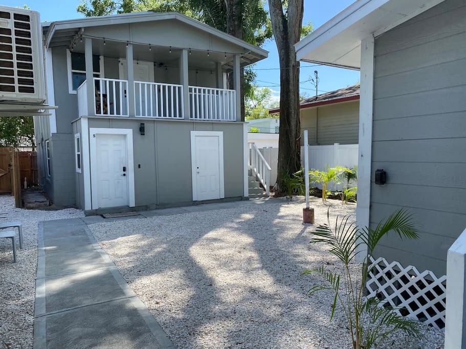 Charming Bungalow, fully renovated, top floor, with a covered balcony, designated parking. Located in the trendy south Tampa Heights neighborhood. Minutes from Armature Works, a Quiet and vibrant area. Beautiful kitchen with new stainless steel appliances, dishwasher, stove, microwave, quartz countertop, garbage disposal, and lots of windows. Sparkling clean and sanitized for each guest. Features new floors, high ceilings, a dining area, and an open-air balcony. We stocked this bungalow with everything you need for a comfortable stay. Comfy memory foam mattress, 4K Ruko TV with Netflix and cable channels, Excellent Wifi coverage, Fully stocked kitchen with a full size range and dishwasher, The washer dryer are inside the unit. Sitting area, dining area, and a balcony to have your ice tea in the afternoon. Armature Works, a popular food hall, and workspace with rooftop bars, and some of the best restaurants in town is within walking distance. Professionally cleaned for each guest. Whole furnished private apartment. Access 24/7 with a keypad lock. We want you to be as comfortable as possible and respect your privacy. You can reach me at nearly any time of the day for any concerns. We take pride in providing guests with quick response time and try our best to help. we are here for you during your stay, but our level of interaction is up to you. I’m only a text message away. You will be able to self check-in upon arrival. Located in Tampa Heights less than 5 minutes drive to downtown Tampa, Ybor City and the convention center, Amelia arena and Raymond James stadium are less than 10 minutes away. you can also take a walk along Tampa’s famous Riverwalk and reach the Sparksman’s wharf in about 30 minutes. Scooters 🛴 are also a great option and available in various areas of town. TPA Airport is about 15 minutes away Tampa Aquarium 10 minutes Busch gardens 20 minutes Clearwater 30 minutes St. Pete pier 35 minutes Orlando parks 1.5 hour Dedicated private parking for one car 🚗 is available in the back alley. You can park additional cars in the streets around the house, street parking is free. Free dedicated back alley parking next to the building, steps from the door. No parties or unregistered over-night guests. Ring audio/video security system on the exterior of the house and parking lot operational 24/7/365. Front porch is private, common area is shared with other guests.